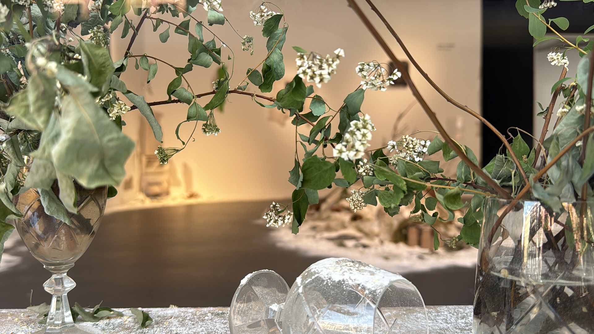 Digital PMMA Printing, Discarded items (wood, iron, glass bottles, twigs), Flour, Cement, Wall decals,